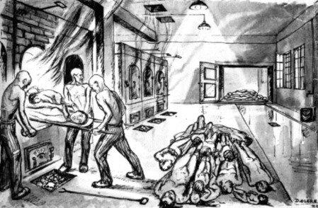 Pensiamo a La stanza del forno (precisamente il Crematorio III di Birkenau), in cui alcuni Sonderkommandos sono costretti a cremare i corpi di altri ebrei: in primo piano, a destra, una massa informe di cadaveri anonimi, il cui arrivo in questo “salotto della morte” è facilitato dal montacarichi posto sullo sfondo. Le opere di Olère (dipinti e disegni), acquistarono un’importanza tale da essere utilizzate nei processi ai gerarchi nazisti tenutisi nel dopoguerra.